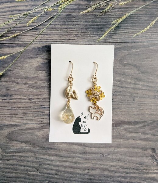 菜の花とシトリンのしずくピアス