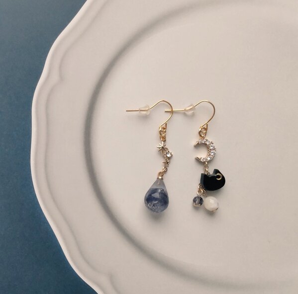 黒猫と夜空のしずくピアス