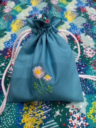 カモミール巾着 お庭のカモミールで午後の紅茶を☕