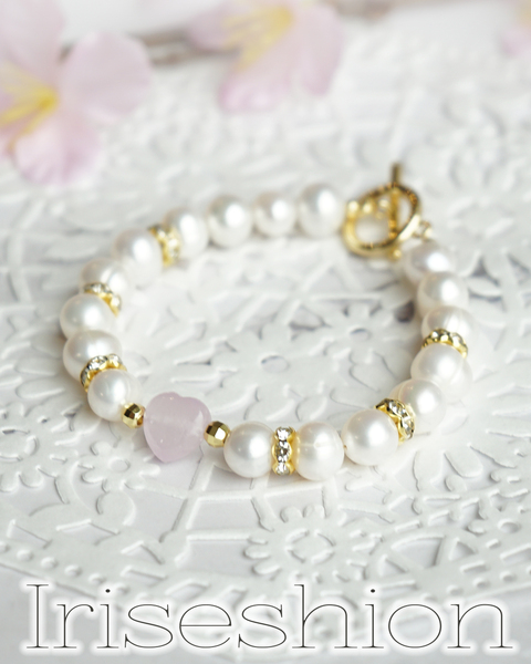 クンツァイトと淡水パールのブレスレット