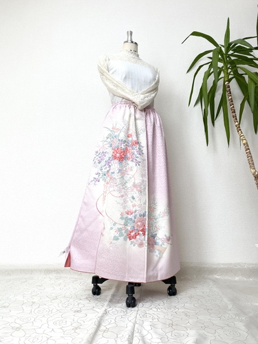 大人可愛い着物リメイクスカートフリーサイズウエストゴムロングスカート