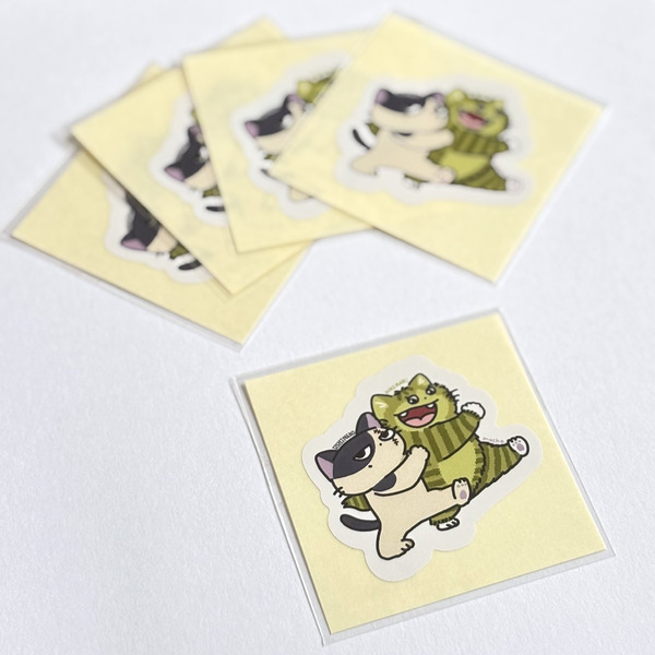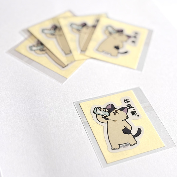 牛柄のちょっぴり泣き虫な『うしねこ』と、苔のような見た目のわんぱくねこ『こけまる』の、ユニークでかわいいステッカーやキーホルダーをはじめとした生活雑貨などの作品を販売します。