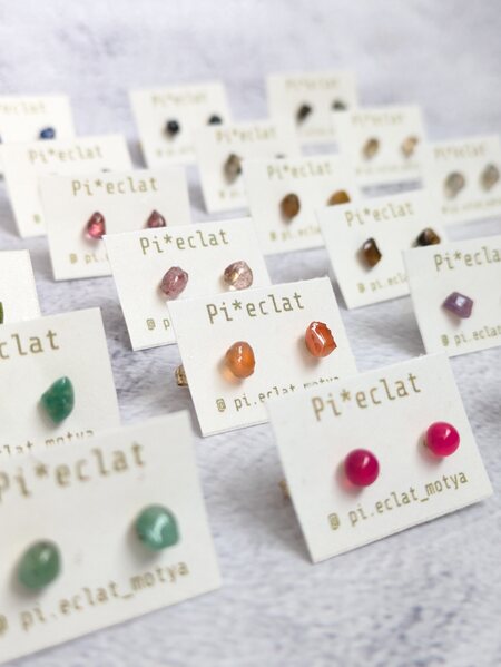 小さめで華奢なデザインを中心に天然石やレジン、ビーズ刺繍など多種多様のピアス(イヤリング)をご用意。