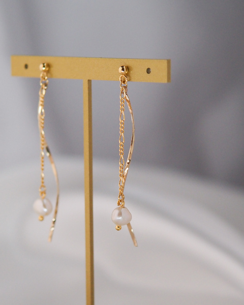シンプルが好き ホワイト淡水パールが揺れるピアス