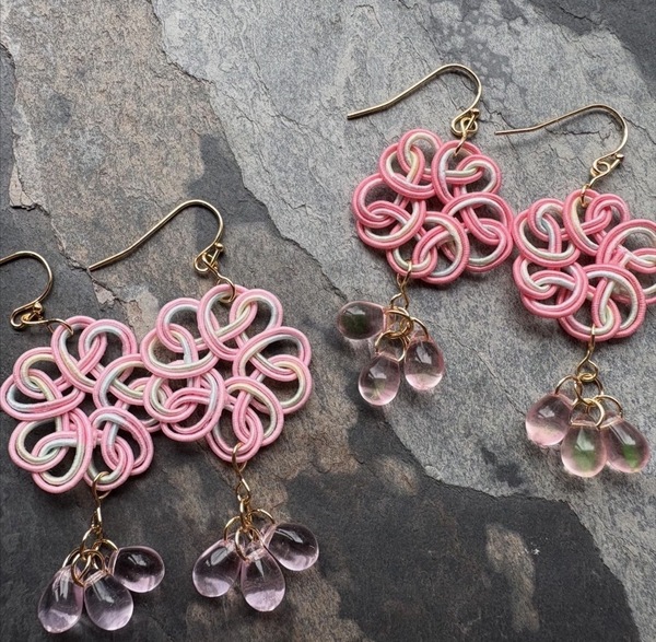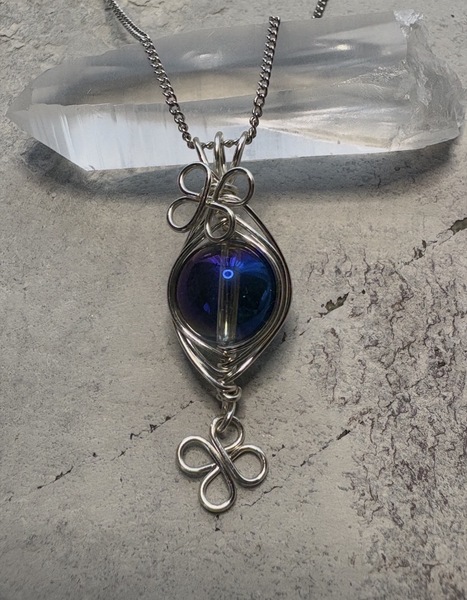 オーラクォーツのクローバーモチーフのワイヤーラッピングネックレス