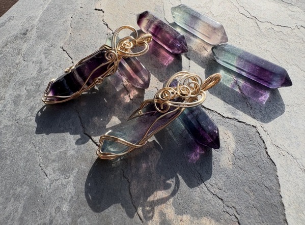 フローライトポイントのワイヤーラッピングペンダントトップ
