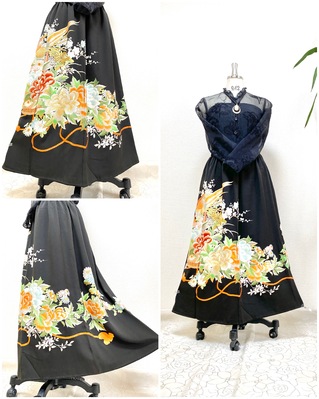 着物リメイクロングスカート