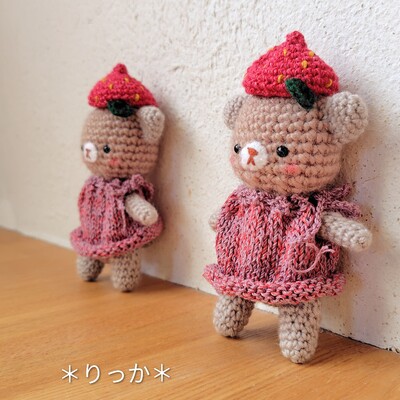 いちごのベレー帽を被ったくまのあみぐるみ