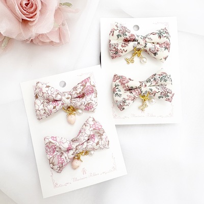 いちごとちょうちょのリバティリボンヘアゴム