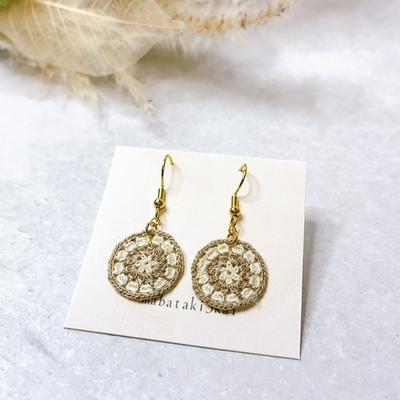 いとあみサークル《カプチーノ》刺繍糸で編んだ小さな丸モチーフピアス・イヤリング